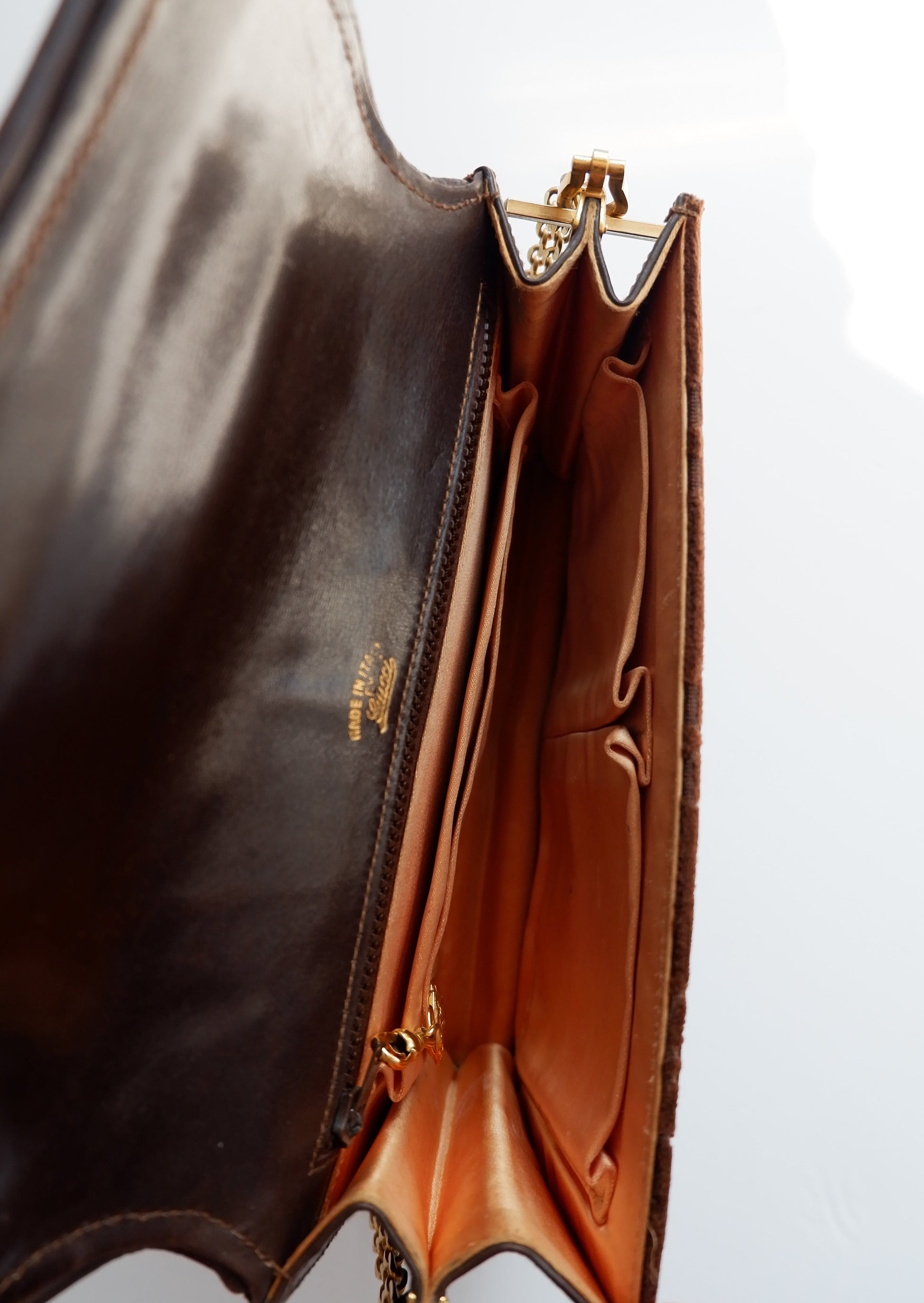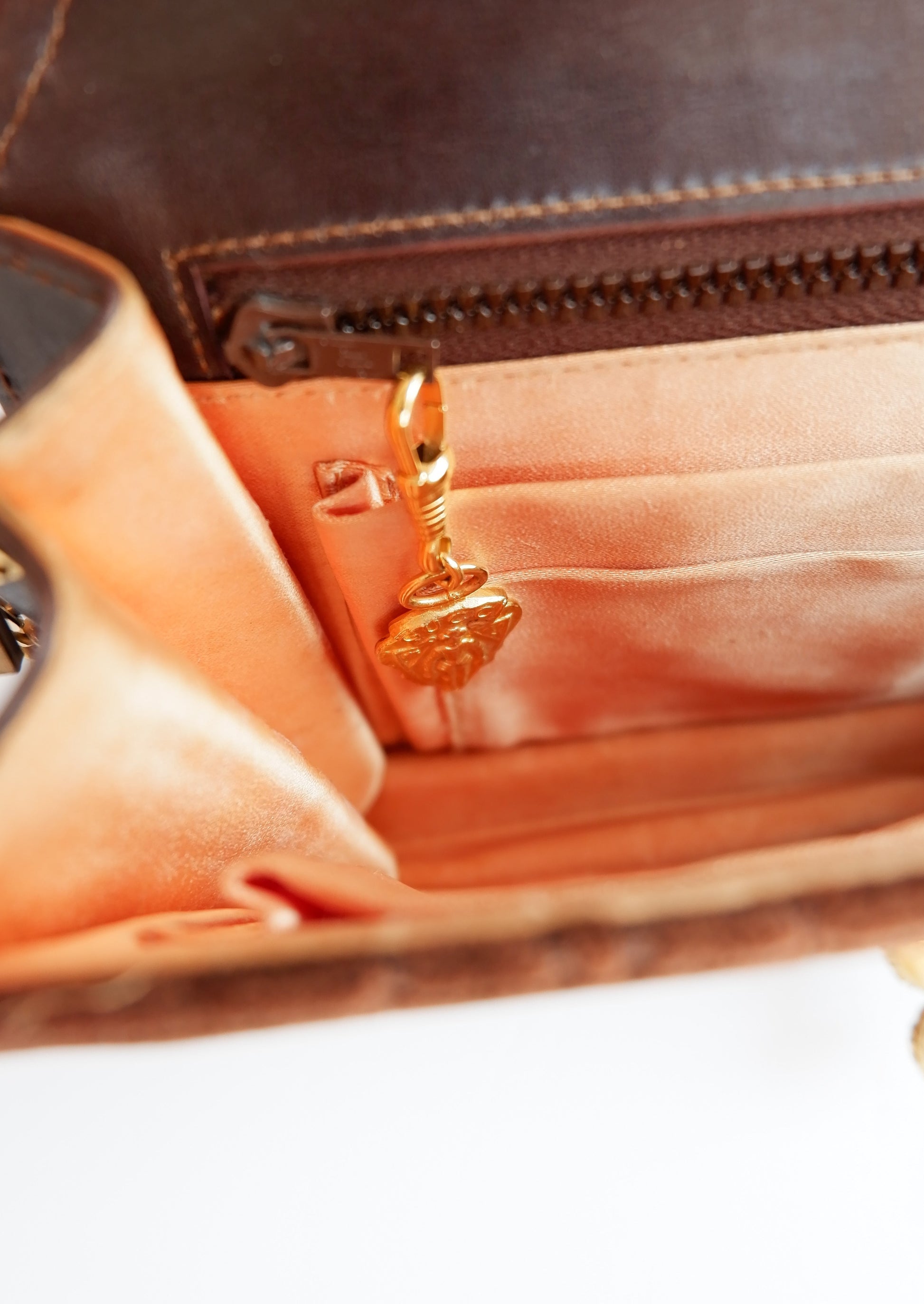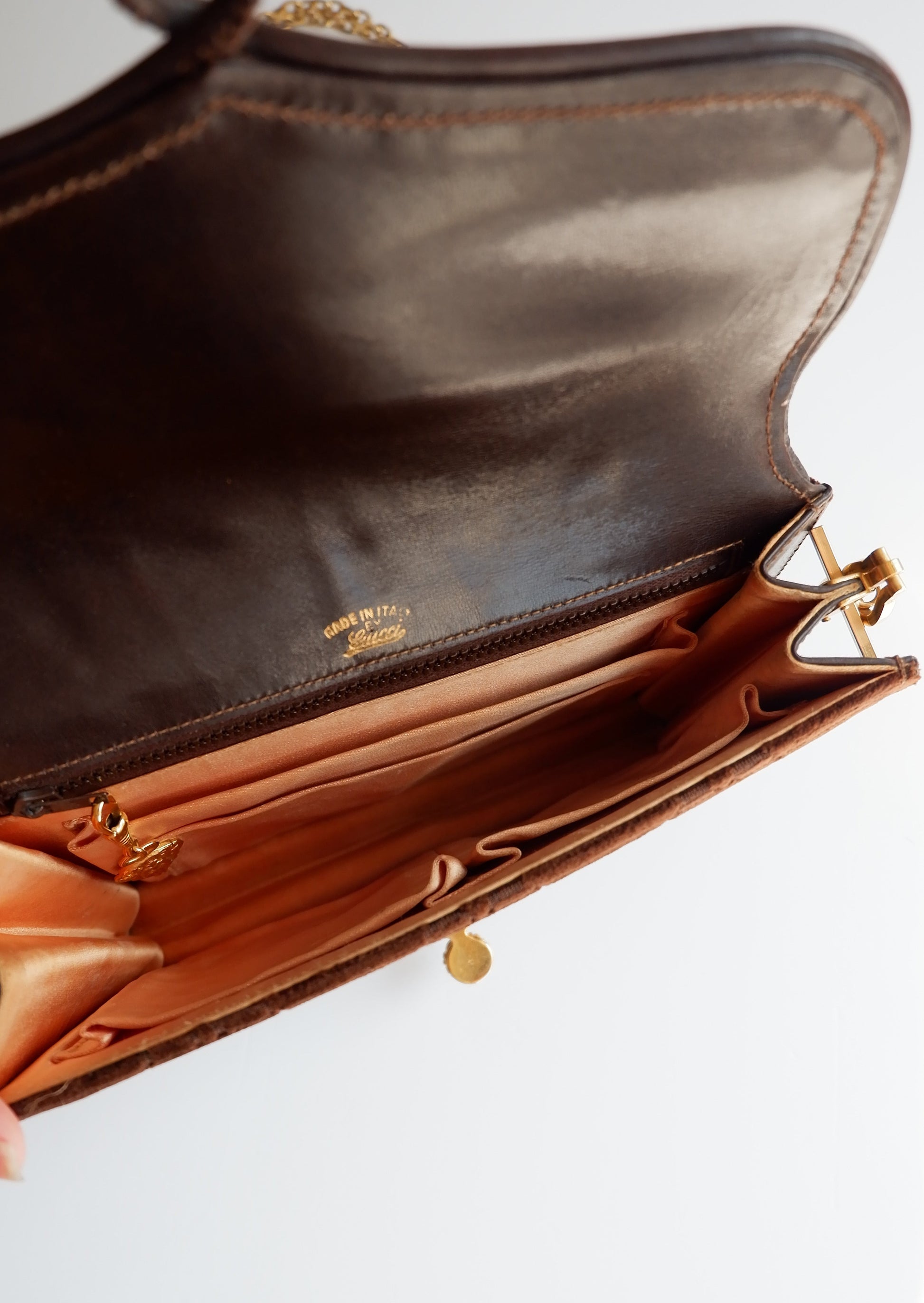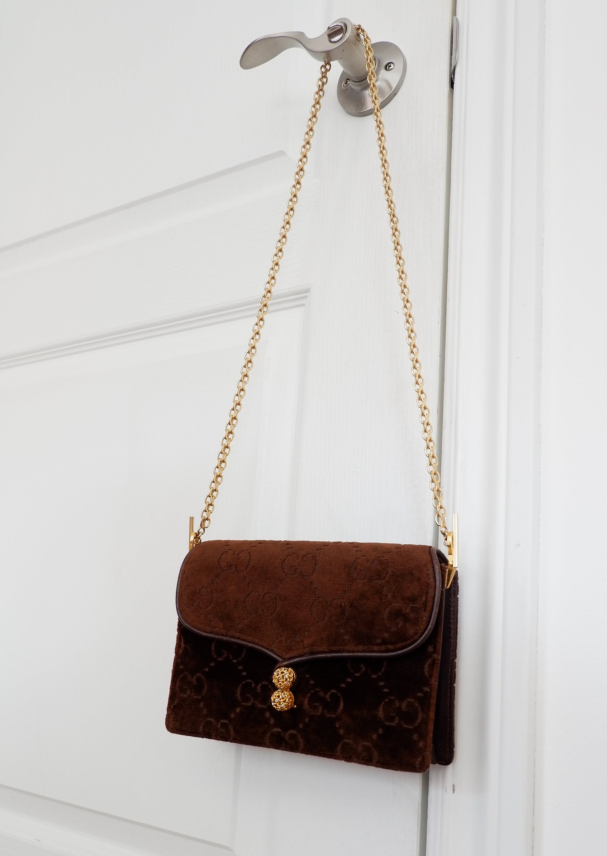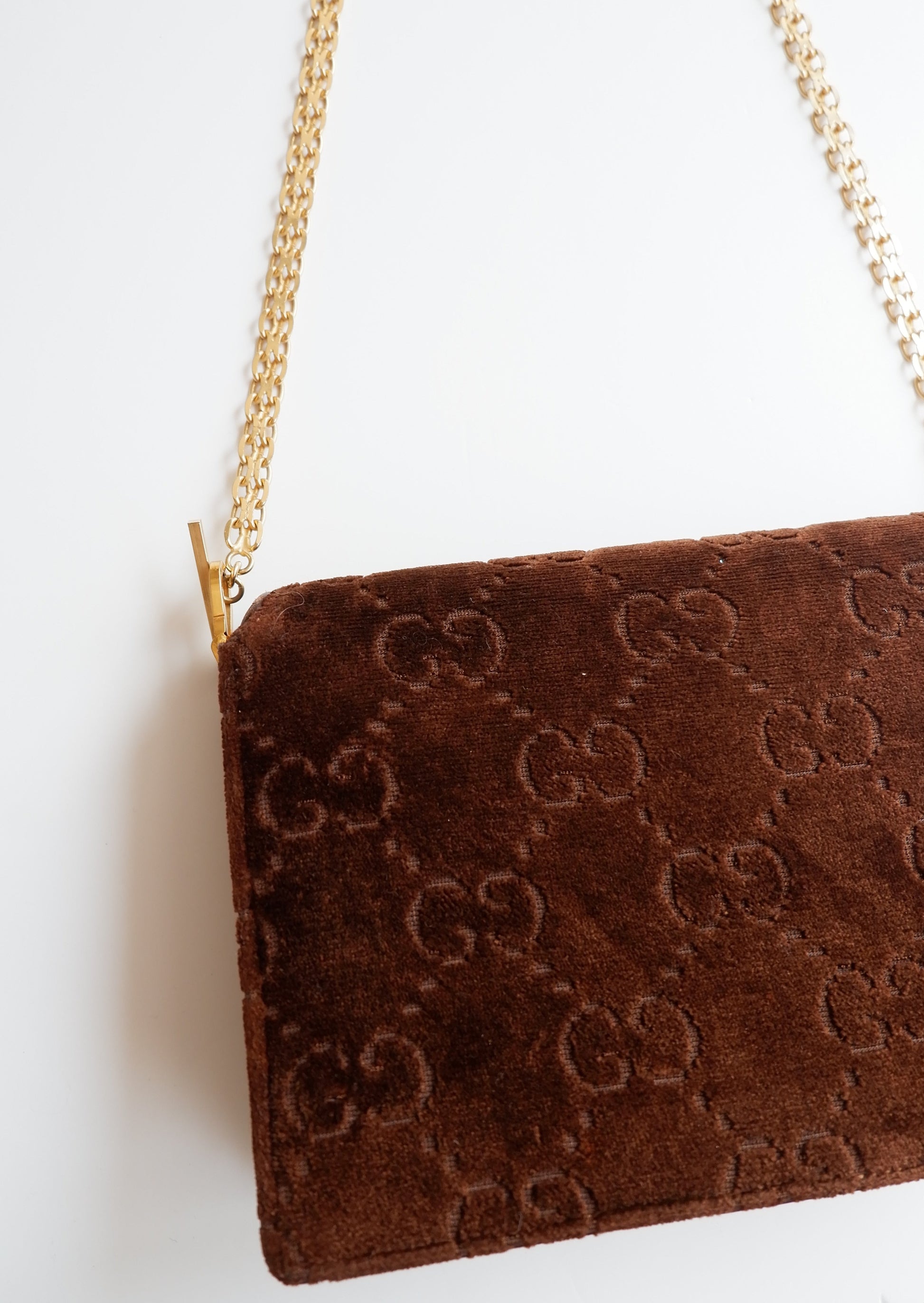 Authentic Preowned Vintage Gucci Brown Velvet GG Print Shoulder Bag