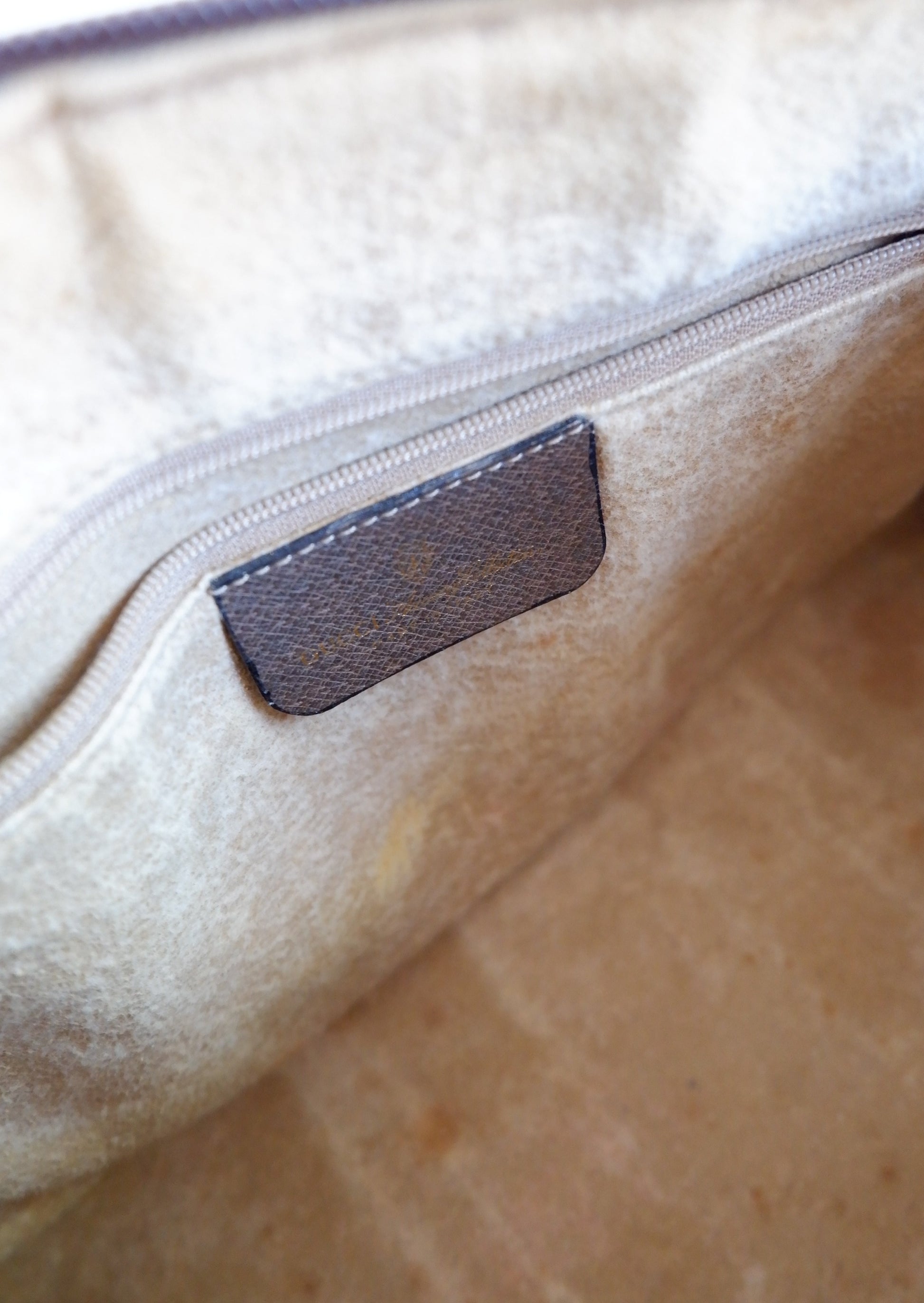 Condition: 8/10 Good Vintage Condition.Signs of wear on handles (scratches to leather) Subtle scratches on top of the bag near the zipper. The interior is clean but shows signs of being a vintage bag - marks and discoloration to the lining.