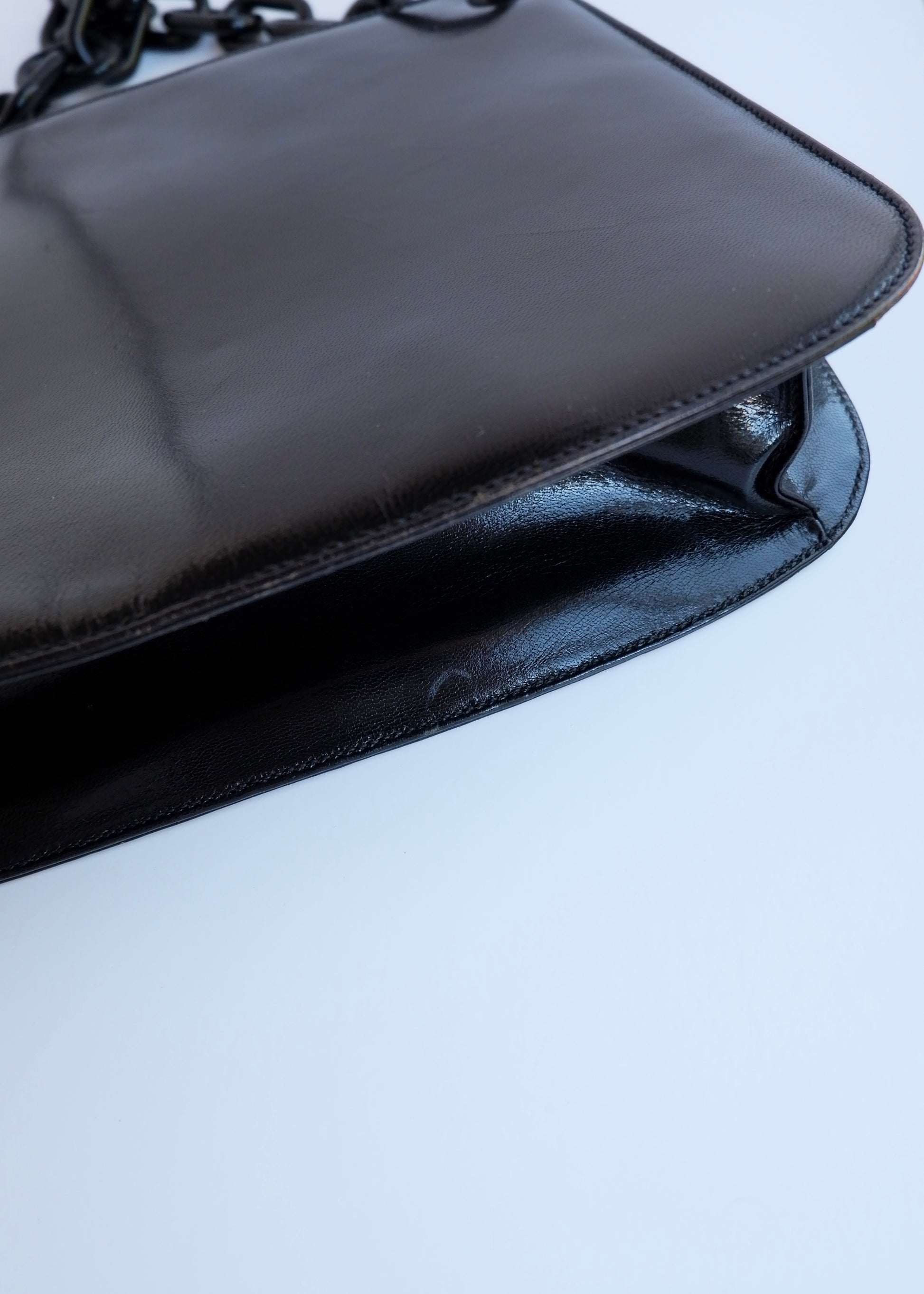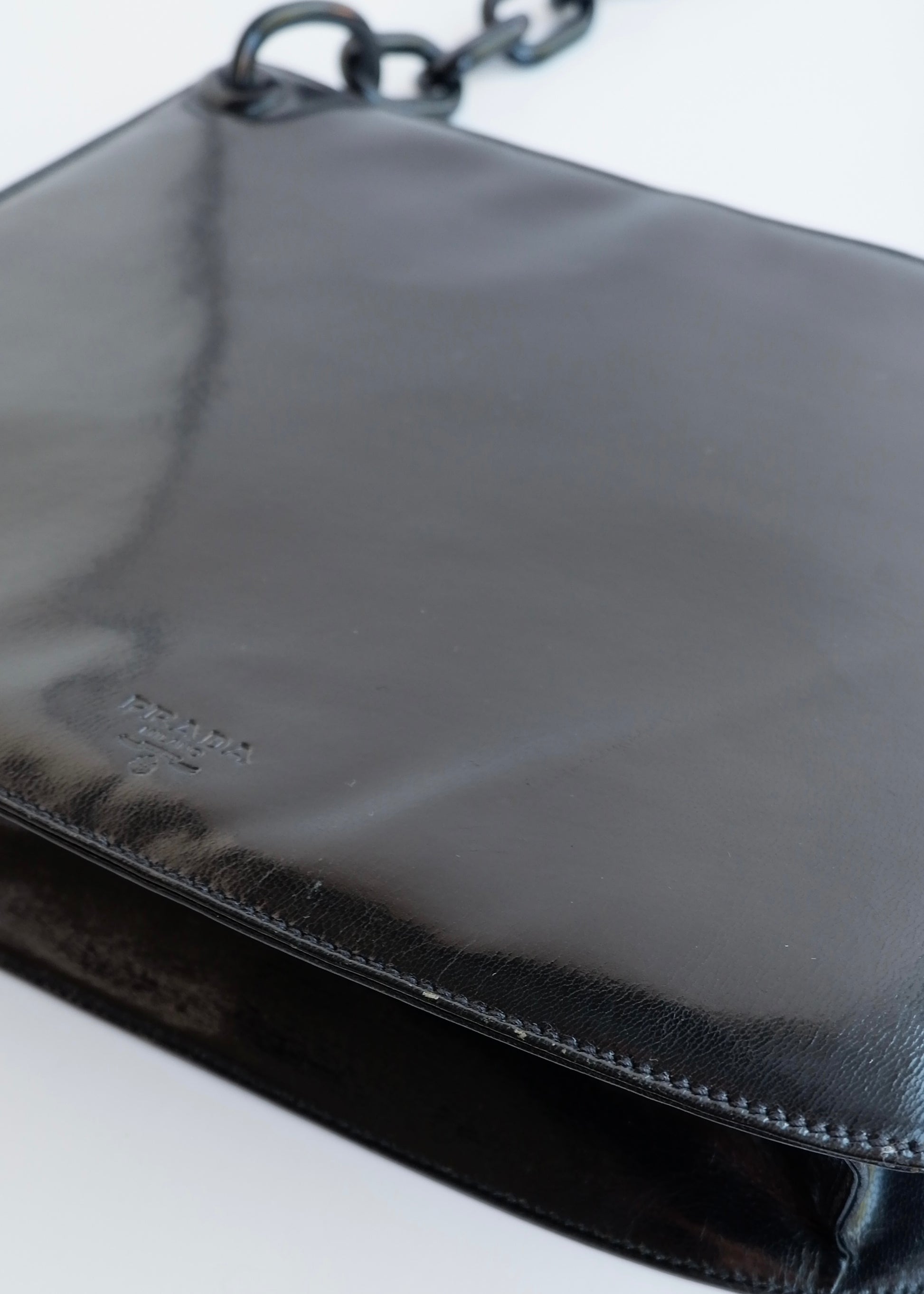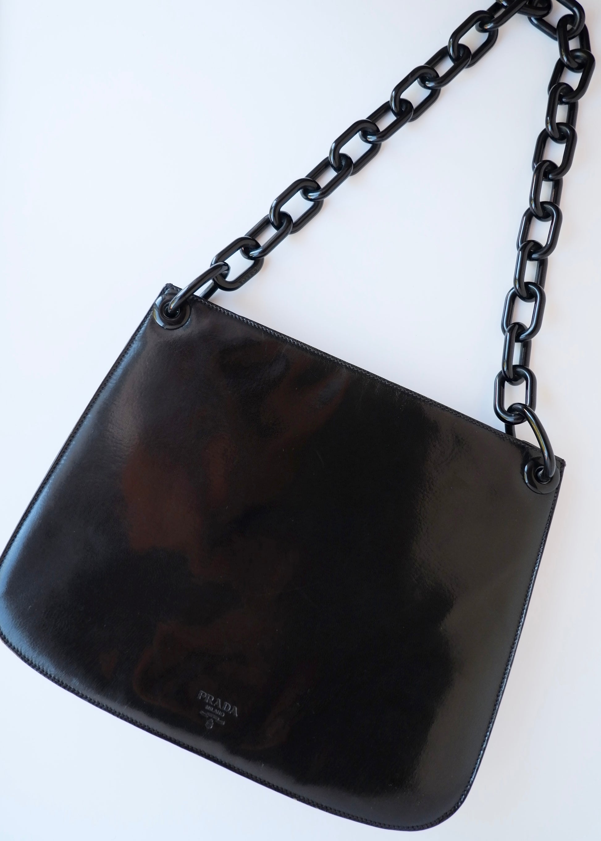 Authentic Preowned Vintage Prada Black Patent Leather Long Chain Shoulder Bag