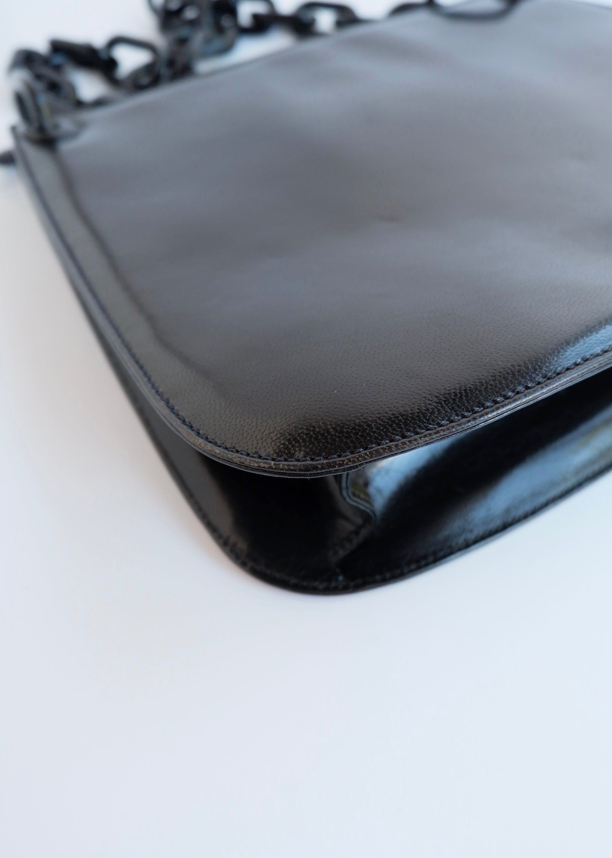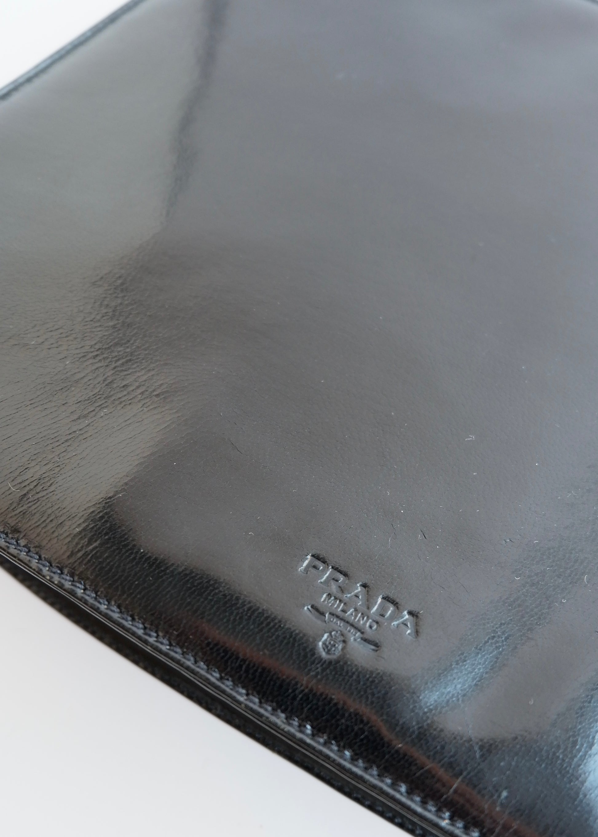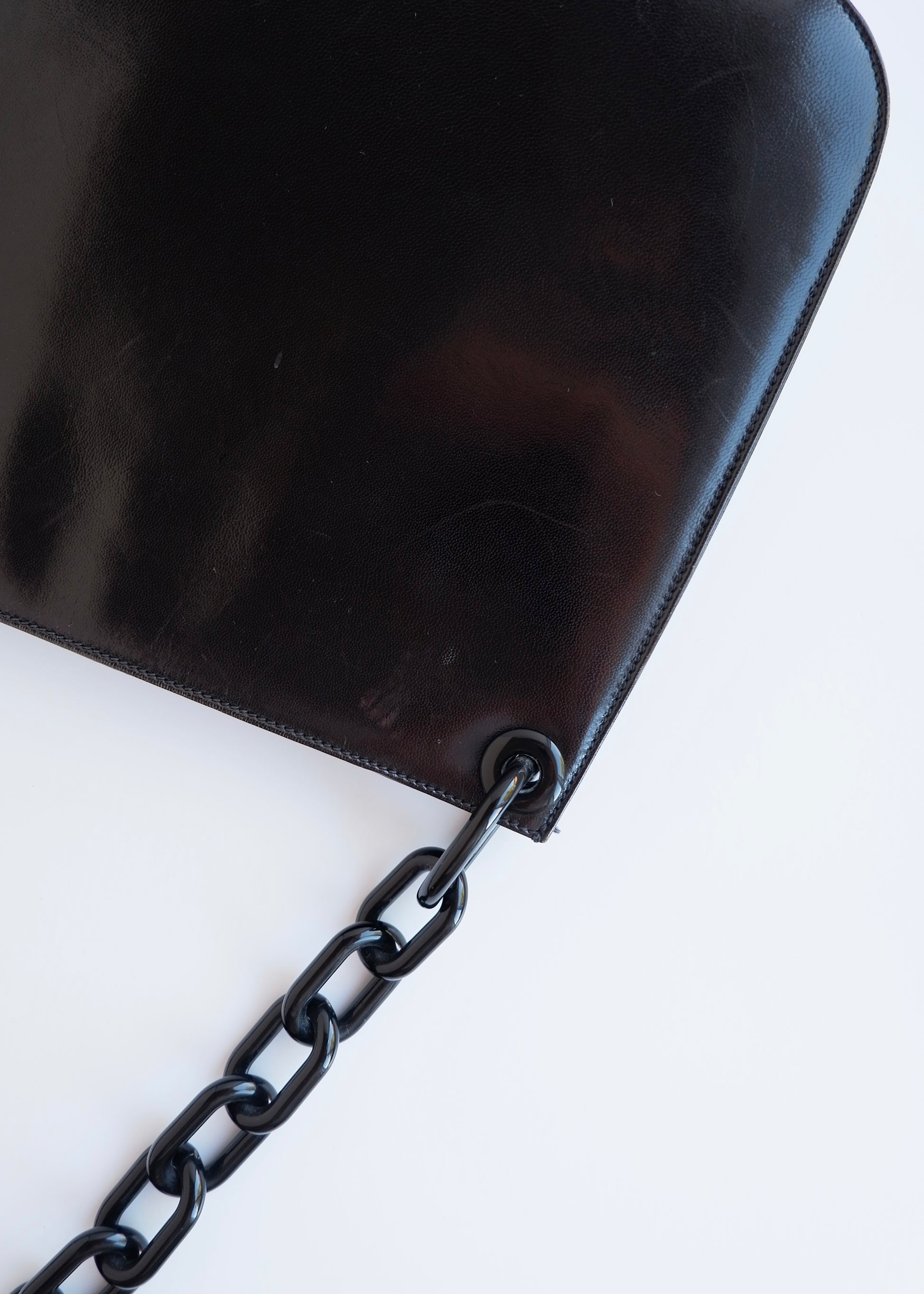 Authentic Preowned Vintage Prada Black Patent Leather Long Chain Shoulder Bag