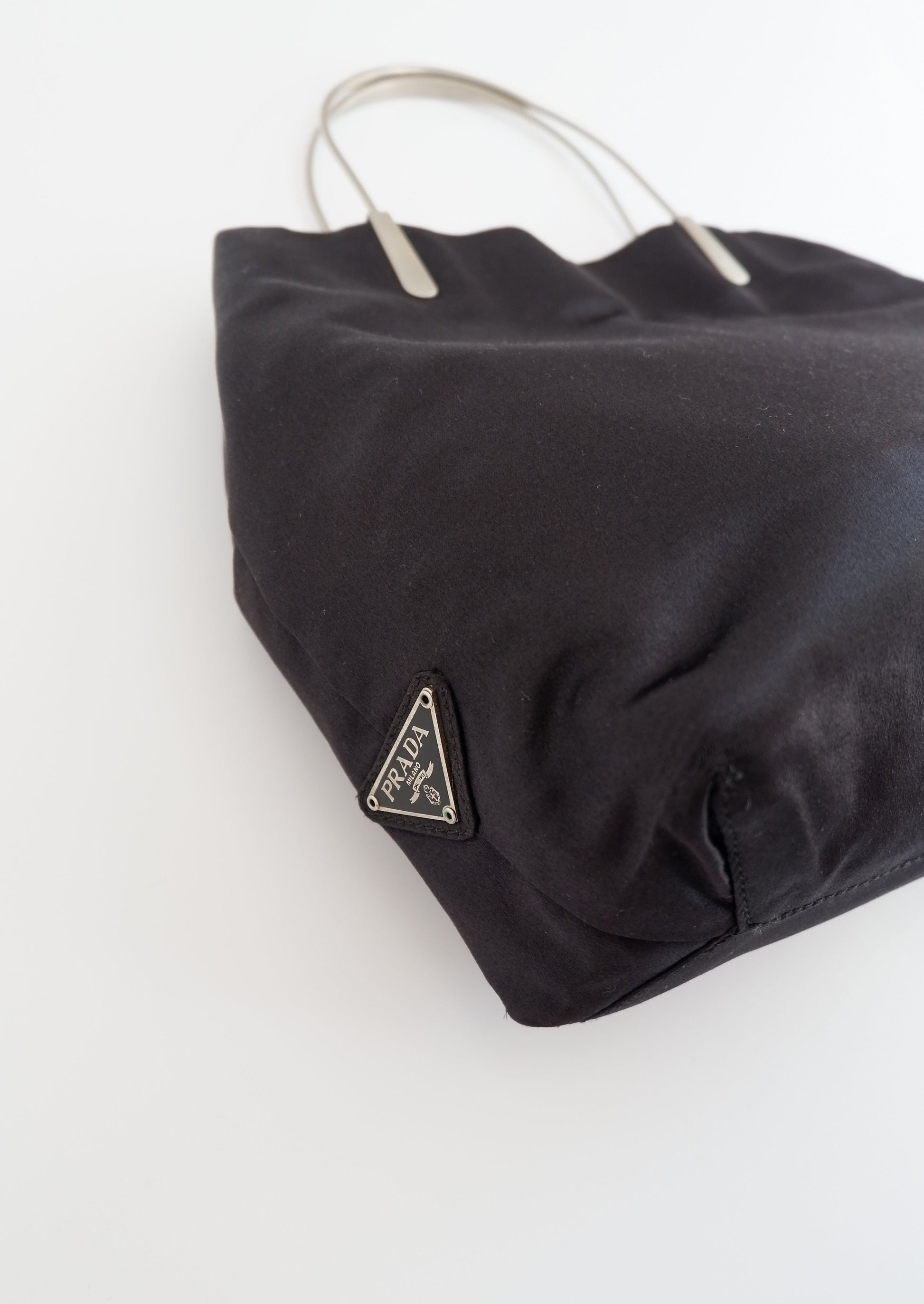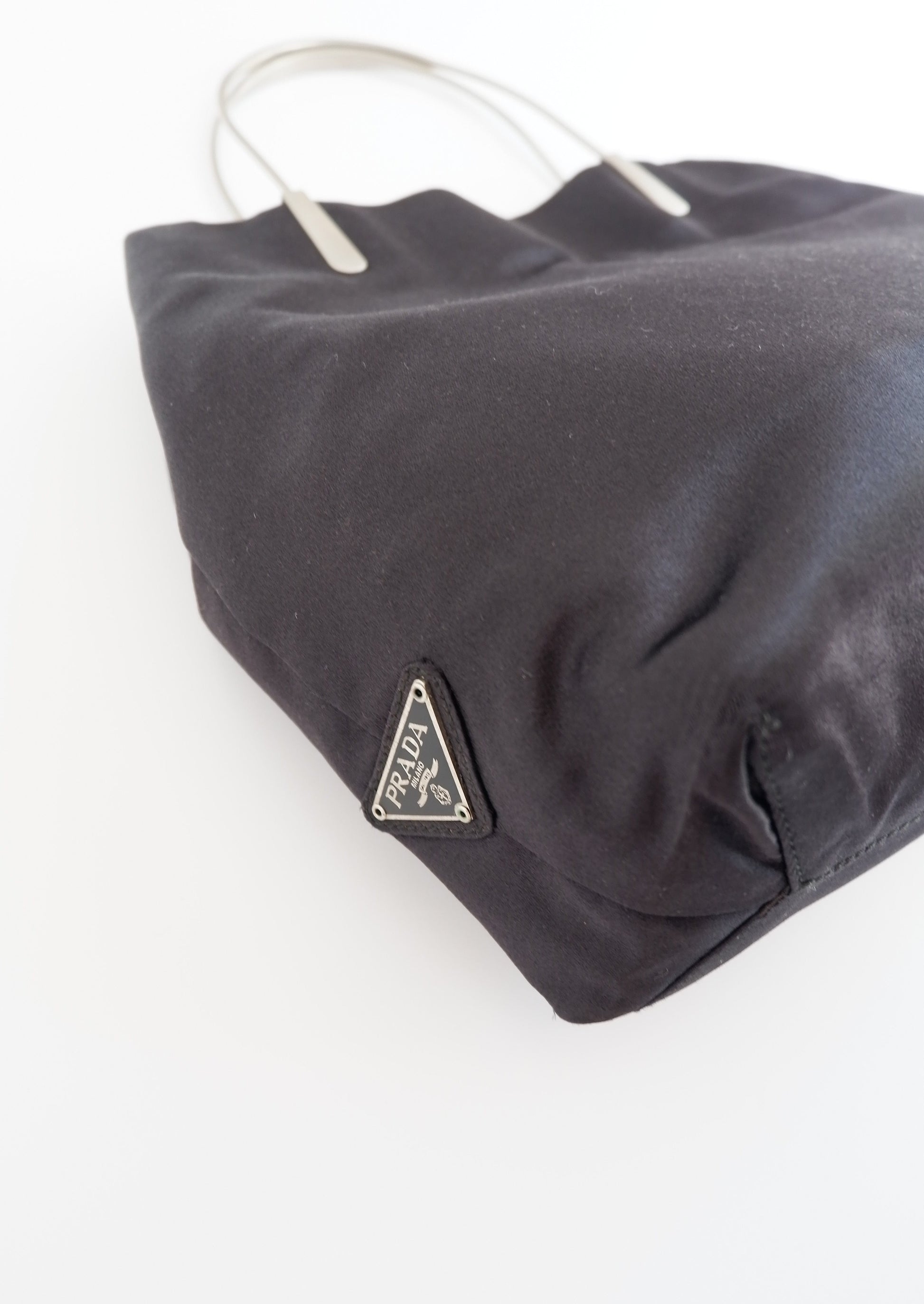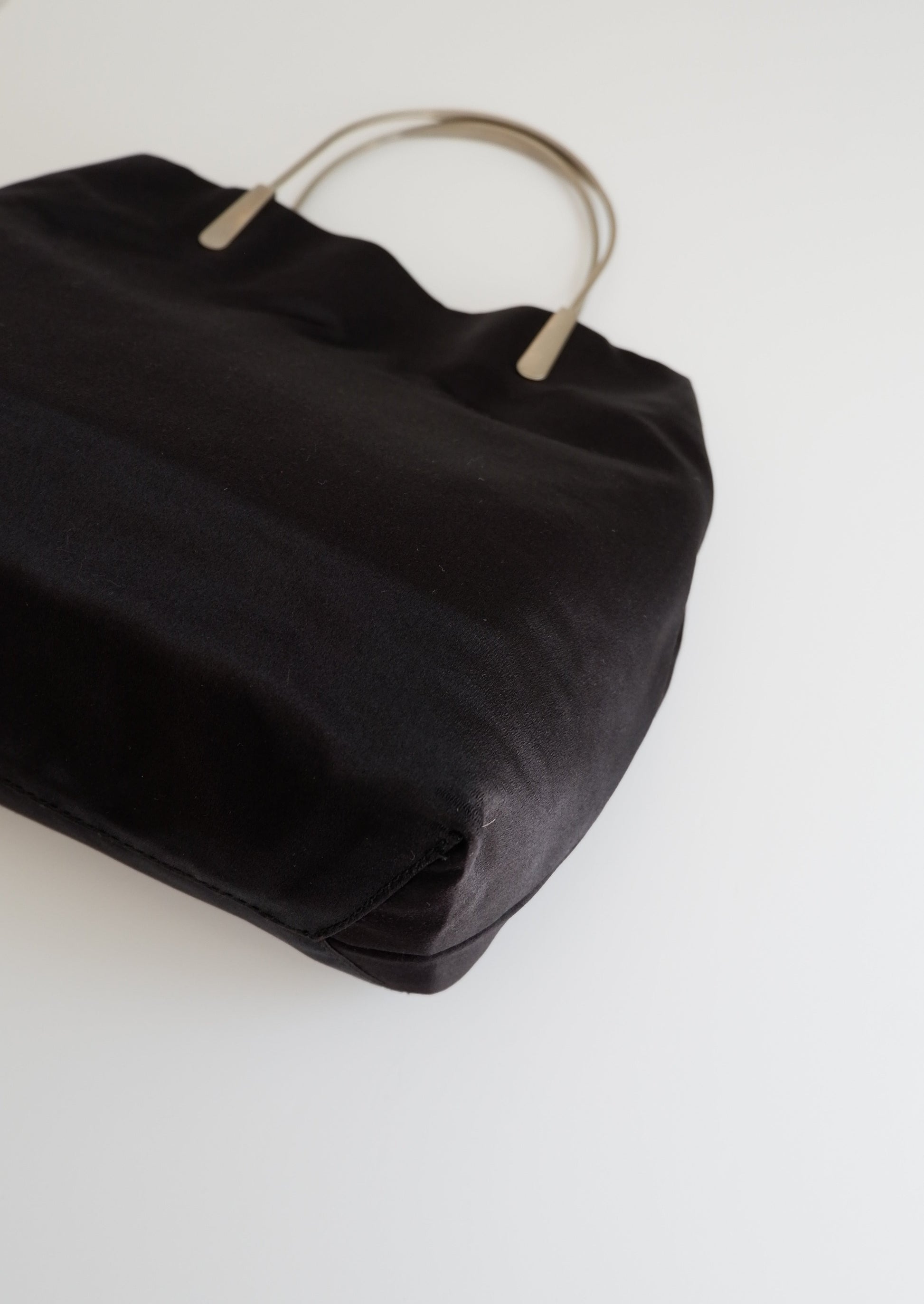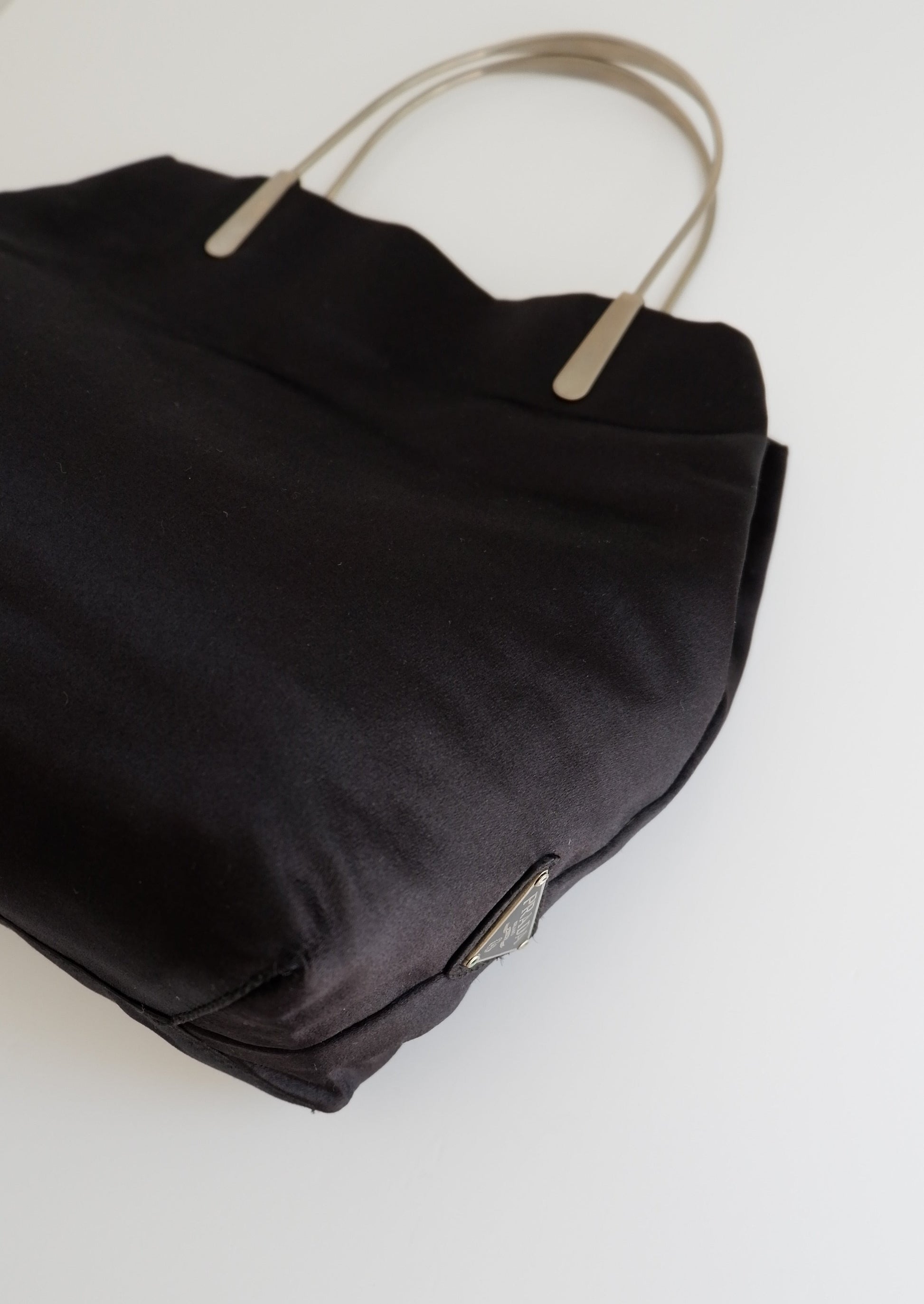 Authentic Preowned Vintage Prada Black Satin Metal Handle Handbag