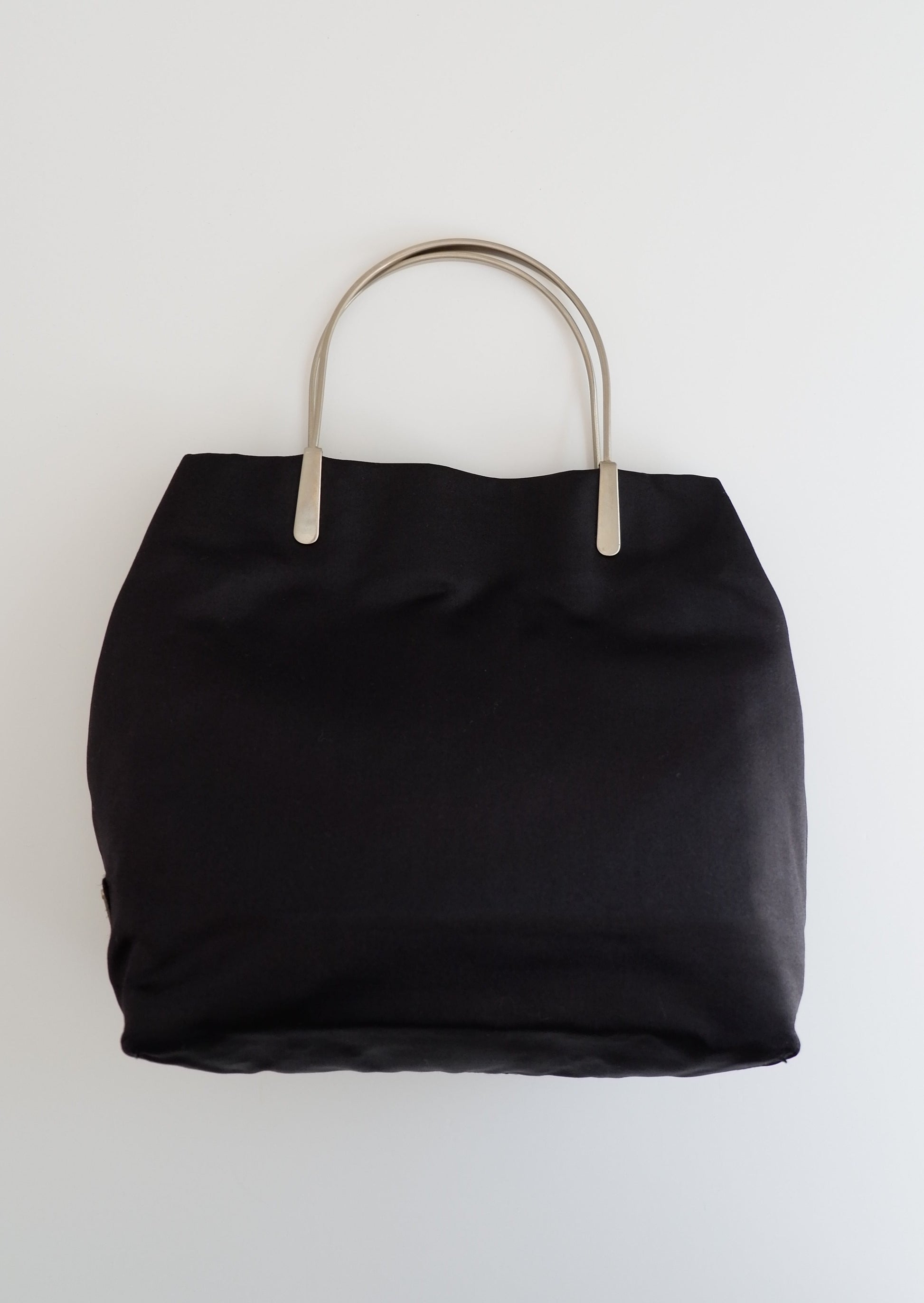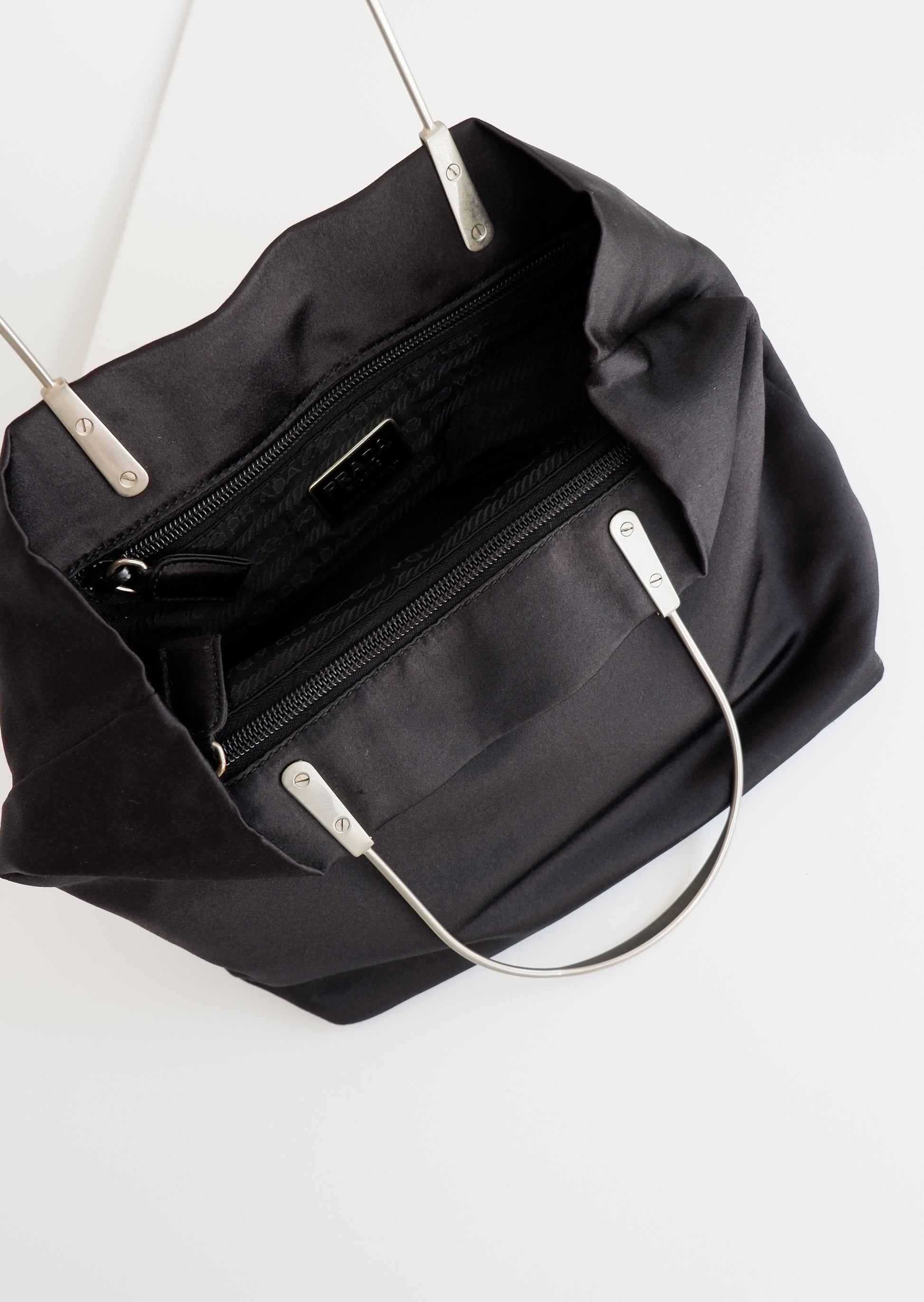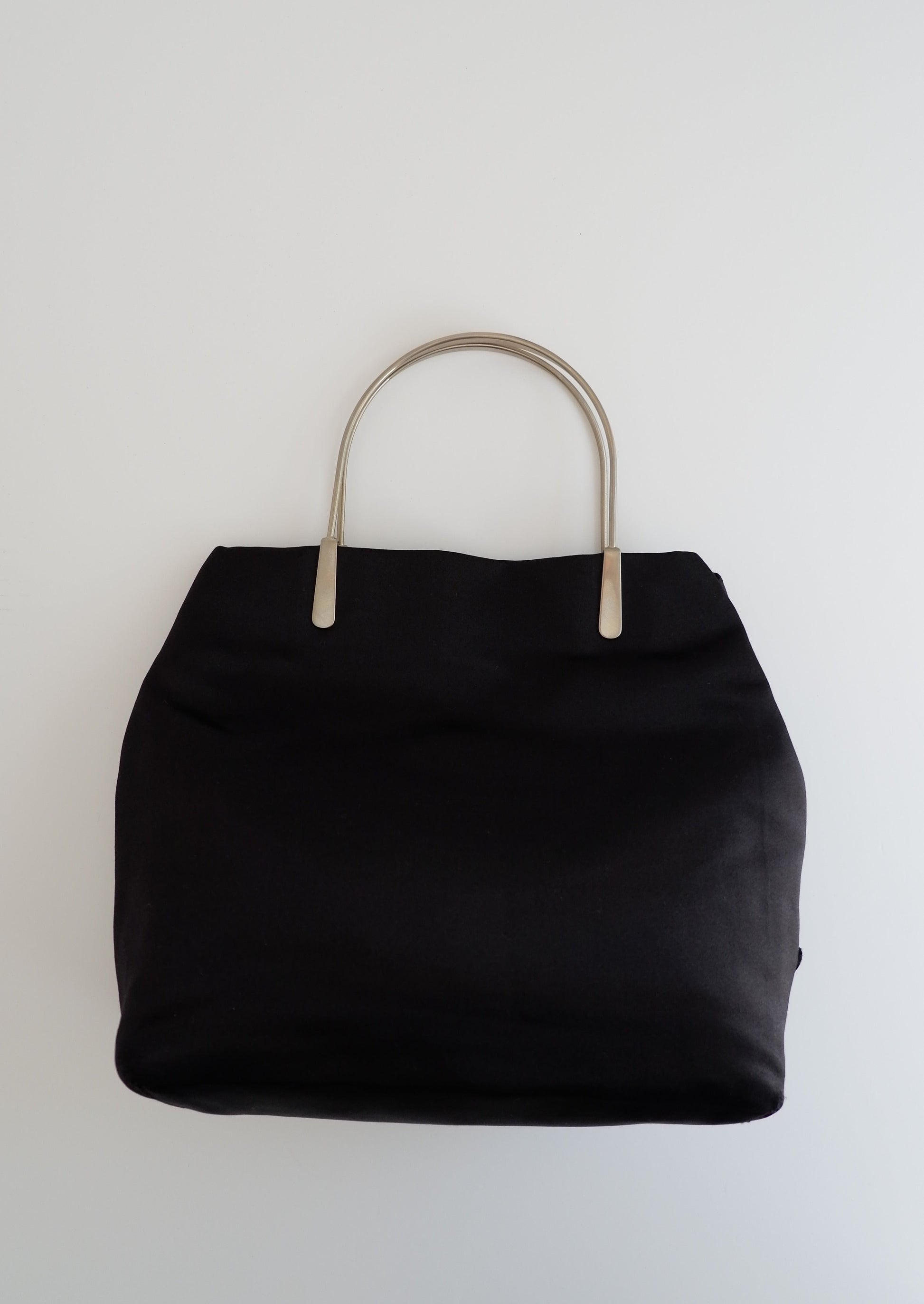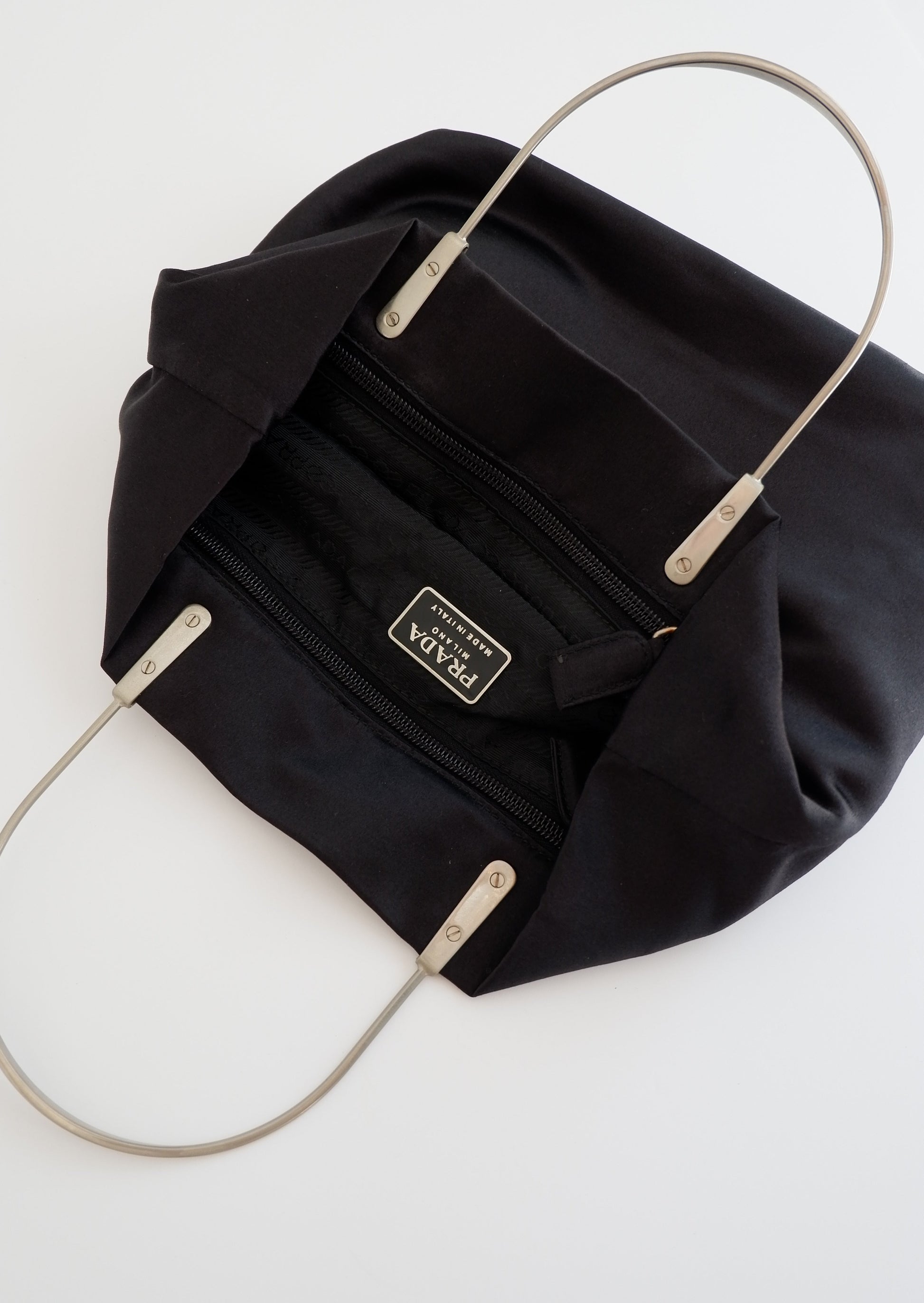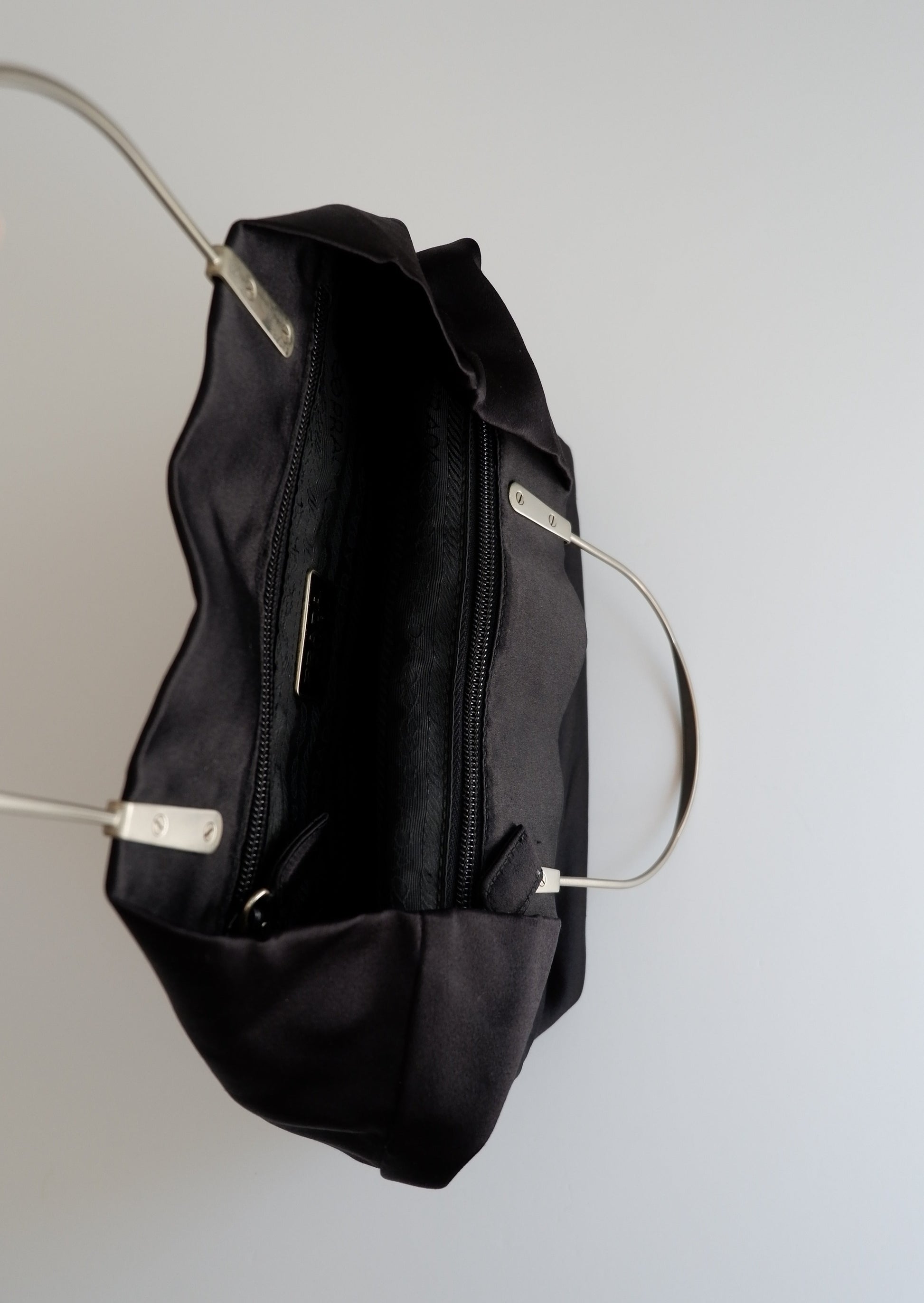 Authentic Preowned Vintage Prada Black Satin Metal Handle Handbag