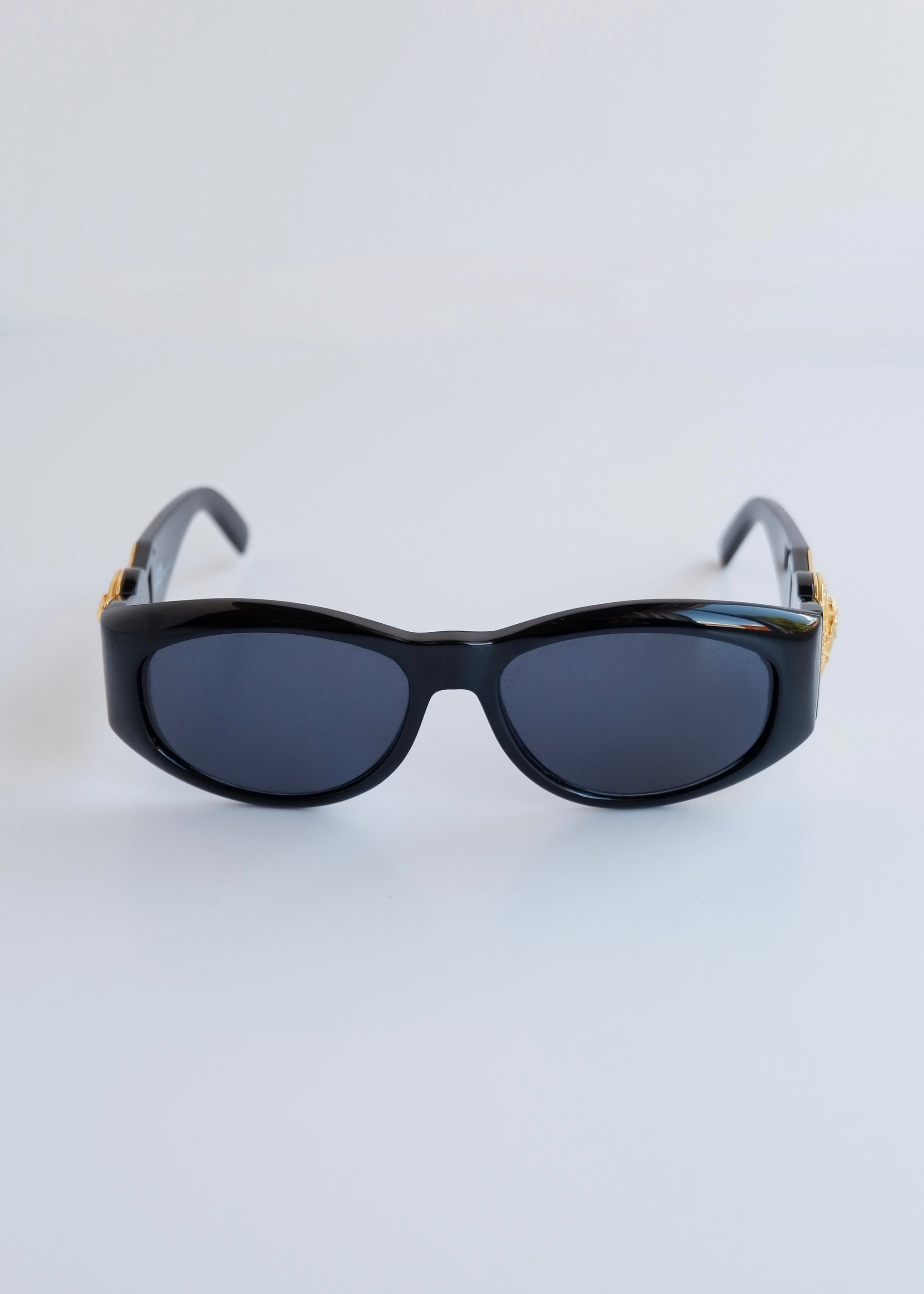 Authentic Preowned Vintage Versace Black Square Frame Medusa Logo Sunglasses